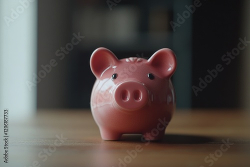 A bright pink piggy bank sits atop a wooden table, ready for savings and financial planning