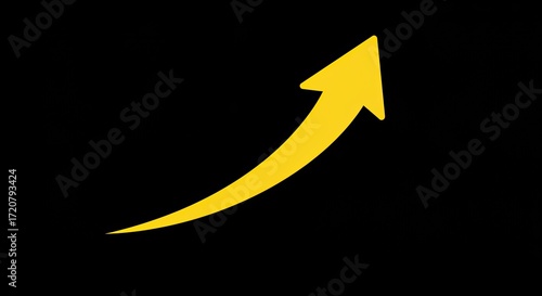 A bright yellow arrow curves upwards against a stark black background, symbolizing growth and progress.