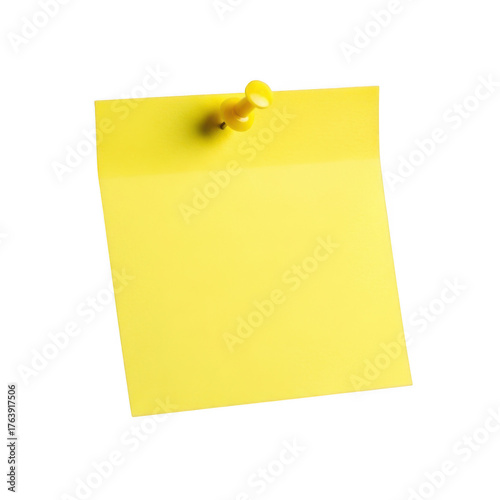 sticky, note, yellow, paper, memo, reminder, message, adhesive, square, blank, empty, writing, surface, office, supply, stationery, school, task, to, to do, list, idea, concept, communication, information, pin, drawing pin, thumbtack, fastener, attachment, graphic, design, element, object, isolated, transparent, background, cut-out, simple, clean, minimalist, bright, high-coloured, colours, visual