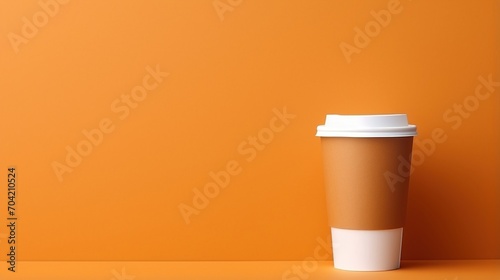 coffee cup, orange background, minimalism, cup, mug, hot drink, beverage, container, take-away, recyclable, disposable, sleeve, lid, white, brown, minimal, simple, plain, unbranded, generic, studio photography, isolated, cut-out, no people