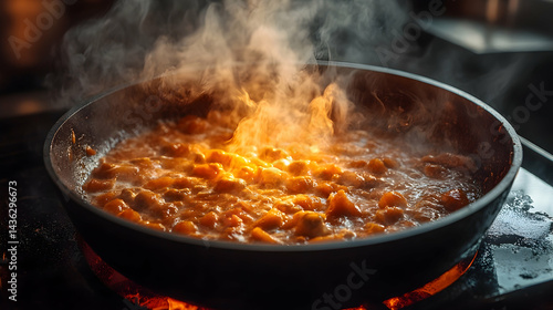 stew, cooking, kitchen, steam, food, warmth, pot, stove, ingredient, meal, delicious, receipe, home, culinary, heat, favor, simmer, preparation, cosy, aromatic, dinner, comfort, temperature, dish, simmering, vibrant, orange, texture, appetising, fresh, organic, herb, spice, epicure, savoury, inviting, rustic, homemade, boiling, healthy, nourishment, family, dining, kitchen utensile, utensil