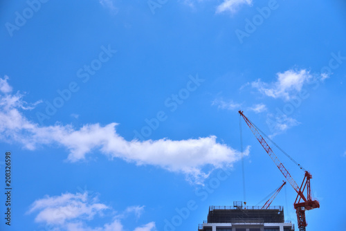 building, blue skies, construction, crane, cloud, blue, contrast, high-coloured, apartment