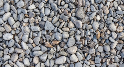 A bulk collection of medium gray pebbles from nature for concrete mixing with enhanced impact resistance