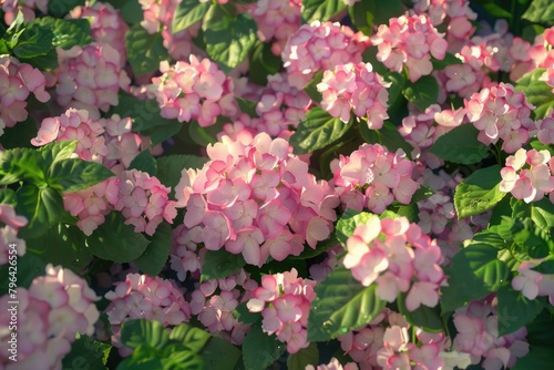 A bunch of pink flowers with vibrant green leaves. Perfect for spring or nature-themed projects
