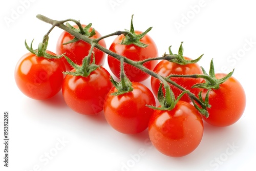 tomatoes, tomatoes, cherry, ripe, bunch, red, growing, vine, green, leaf, food, vegetable, fresh, produce, organic, garden, plant, healthy, natural, ingredient, culinary, raw, nourishment, botany, agriculture, edible, growth, fruit, vitamin, juicy, cookery, harvest, epicure, ripeness, summer, vitamin, root, season, leafy, stock, white, background, studio, isolated, close, macro, detail