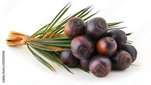 A bunch of ripe Saw Palmetto fruits presented against a white background. Saw Palmetto on White Background. Concept Product Photography,
