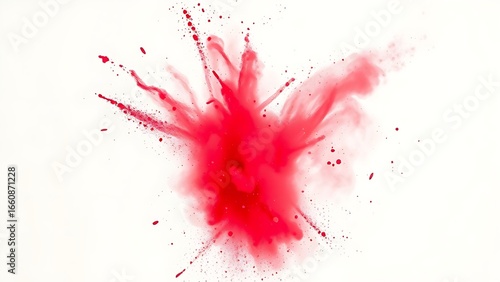 A burst of vibrant red powder frozen in motion against a clean white backdrop, capturing festive energy.