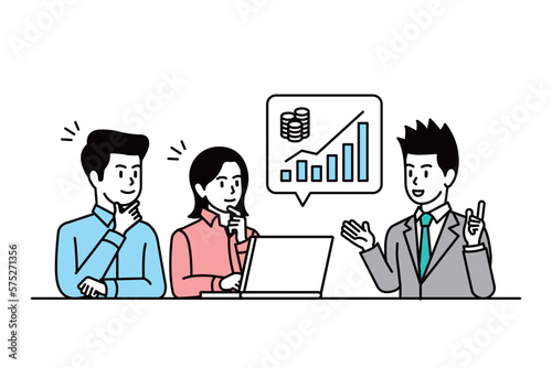 consulting, stock, finance, investment, business, profit, illustration, people, businessman, woman, consultation, loan, insurance, money, mortgage, property, couple, man, corporation, smile, notebook, cyberspace, vector, work, family, lifestyle, personal computer, planning, refund, suit, conversation, professional, future