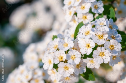 A captivating close-up reveals the delicate beauty of Spiraea betulifolia's pure white blossoms in spring.