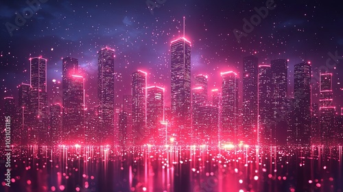 neon, pink, futuristic, city, skyline, glowing, reflections, night, skyscraper, light, glow, illumination, vibrant, digital, modern, bright, advanced, urban, architecture, science fiction, colourful, dynamic, future, imagery, surreal, visual, concept, progress, creativity, art, smart, city landscape, cyber, fantasy, artistic, dreamlike, aesthetic
