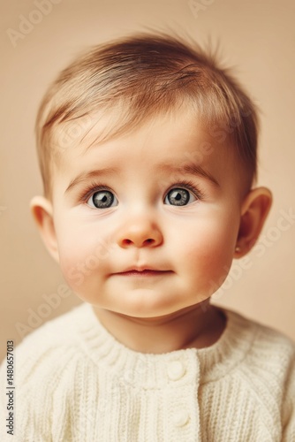 baby, children, infant, portrait, cute, adorable, eye, blue, beautiful, innocent, face, happy, smile, skin, hair, young, little, small, closeup, cream, sweater, clothing, soft, gentle, tender, newborn, children, sweet, joy, happiness, love, warm, family, parenting, childhood, growth, development, human, 1, person, looking, camera, studio, background, neutral, peaceful, serene, portraiture