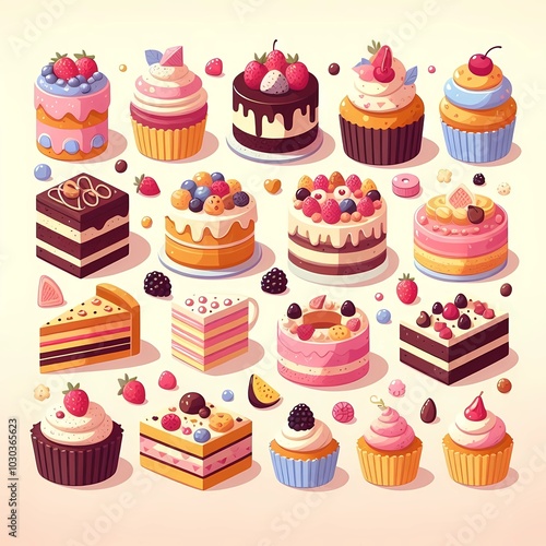 cartoon, cake, cake, colourful, illustration, playful, fun, vibrant, whimsical, celebration, assortment, cupcake, sprinkle, icing, cherry, tier, decoration, variety, favor, sweet, dessert, food, party, design, cheerful, exaggerated, bright, happy, creative, joyful, festive, charming, cute, bakery, sugar, frosting, character, pastry, indulgence, adorable, delicious, inviting, artistic, animated, lively