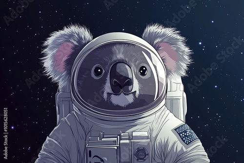 koala, astronaut, space, cartoon, animal, galaxy, adventure, exploration, cute, fur, helmet, star, universe, wildlife, fantasy, science, fun, character, illustration, creative, humor, nature, cosmos, journey, playful, art, design, digital, imaginative, whimsical, portrait, space suit, environment, planet, friendly, extraterrestrial, vibrant, colourful, surreal, adorable, outer space, celestial, light, background, atmosphere