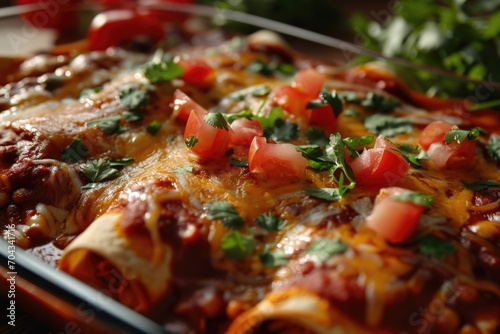 A casserole dish filled with a variety of delicious food. Perfect for showcasing home-cooked meals and comfort food recipes