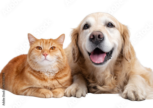 cat, dog, laying, white, background, orange, gold, pet, puppy, animal, friendship, kitten, together, young, portrait, cat, domestic, 2, cute, friends, funny, canino, adorable, studio, togetherness, small, felino, retriever, breed, purebred, baby, happy, labrador, fauna, tabby, puppy, and, pedigree, whelp, brown, beautiful, mammal, indoor, love, whisker, staring, coon, ginger, ai