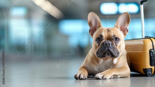 dog, pet, travel, suitcase, indoor, modern, beige, friendly, relaxation, cute, french, happiness, companionship, comfort, adventure, emotion, joy, artistic, contemporary, brown, animal, playful, baggage, aerodrome, breed, family, leisure, stylish, vacation, furry, design, environment, bond, life, culture, urban, canino, paw, smiling