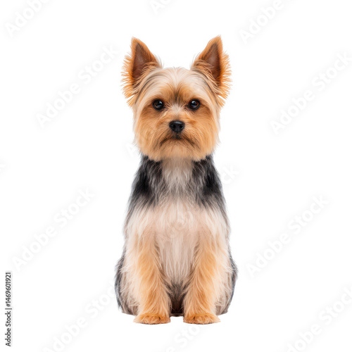 A charming Yorkshire Terrier sits elegantly, showcasing its distinctive coat and alert expression. Perfect for pet lovers and animal enthusiasts.