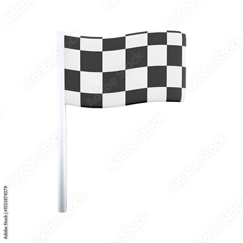 A checkered flag, often used in racing to signal the end of a race or to indicate a winner.