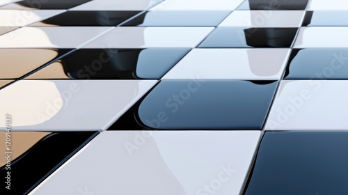 view, checkerboard, pattern, black, white, tile, grid, like, formation, square, glossy, finish, light, sense, depth, dimension, perspective, low, angle, size, overall, composition, prominent, feature, object, element, present