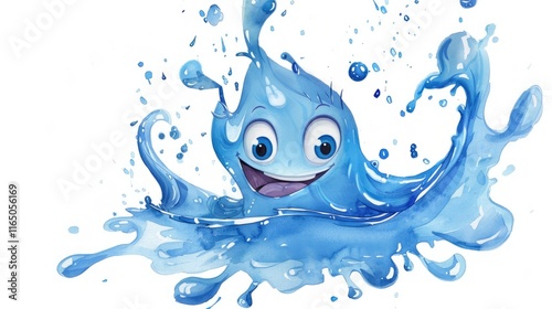 A cheerful, animated water droplet character splashing joyfully.