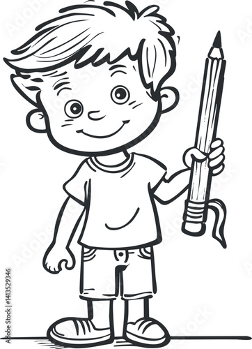 A cheerful boy holding a pencil, embodying creativity and artistic expression in a playful style.