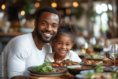 A cheerful family enjoying a healthy meal together at a dinner table, showcasing family wellness and happiness