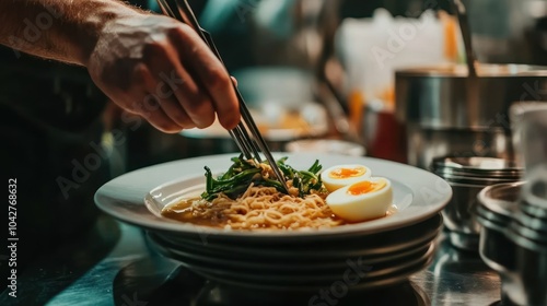 chef, noodle, egg, greener, plate, cooking, cookery, meal, kitchen, food, epicure, culinary, preparation, dining, favor, dish, eatery, asian, ingredient, chopstick, garnish, broth, savoury, presentation, texture, aroma, style, receipe, life events, passion, artistry, warmth, comfort, culture, tradition, enjoyment, palate, fresh, vibrant, delicious, indulgence, skill, craft, service, atmosphere, creativity, harmony, balance, satisfaction