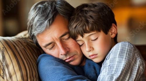 father, son, father and son, human relationships, bond, connection, love, family, togetherness, quiet, peaceful, heartwarming, emotional, tender, intimate, childhood, memory, heritage, bequest, support, trust, care, affection, precious, invaluable, generational, unconditional, nurturing, guidance, role model, admiration, respect, understanding, empathy, compassion, joy, happiness, contentment, fulfillment, life, moment, cherish, treasure, hugs, hug, smile, laughter, look