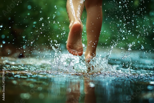 children, splash, water, foot, play, rythm, innocence, serene, calmness, purity, droplet, excitement, harmony, movement, exploration, youth, running, heartbeat, vibrant, flow, wet, laughter, joy, connection, cool, scenery, refreshment, happiness, delight, life, breeze, energy, fun, light, childhood, leisure, beauty, activity, green, nature, adventure, environment, natural, summer, landscape