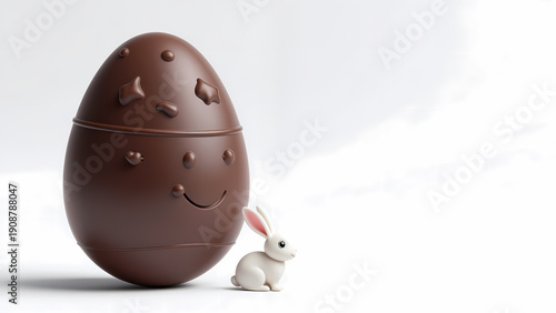 a chocolate Easter egg with a smiling face, featuring small rounded bumps for eyes and nose.