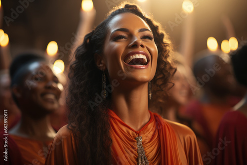 A Christian church choir raising their voices in harmony, symbolizing the power of faith and worship. Concept of spiritual unity. Generative Ai.