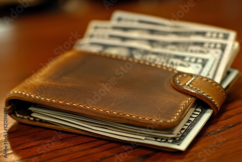 A cinematic professional quality photo of a wallet with cash spilling out of it, captured with expert precision, boasting amazing image quality, all in 8k sharp focus., generated with ai
