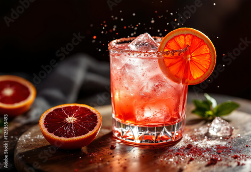 cinematic, shot, blood, orange, cocktail, gin, ice, drink, juice, fruit, beverage, alcoholic, glasses, cold, sweet, refreshing, fresh, food, citrous, summer, background, red, water, tropical, vodka, punch, tequila, freshness, soda, slice