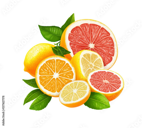 a Citrus Fruits, Oranges, Lemons, Limes, Grapefruits, Tangerines isolated on white background