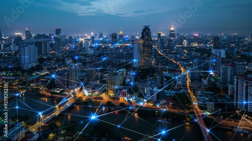 city, night, city landscape, architecture, modern, building, urban, bangkok, skyscraper, landscape, skyline, business, downtown, traffic, travel, light, siam, view, asia, tower, sky, town, landmark, street, beautiful, dusk, twilight, office, transportation, highway, road, aerial, panorama, expressway, evening, district, blue, metropolis, tied-up, capital, river, construction, thai, infrastructure, expressway, sunset, outdoors, hotel, scene