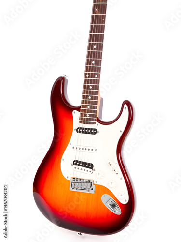 A Classic Electric Guitar with Sunburst Finish Shown Against a White Background
