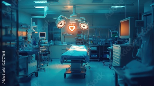 A clean and sterile environment featuring all necessary surgical devices and machines.