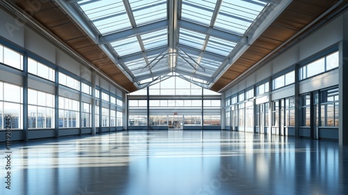 A clean, modern sky train station with a glass roof and structural metal beams.