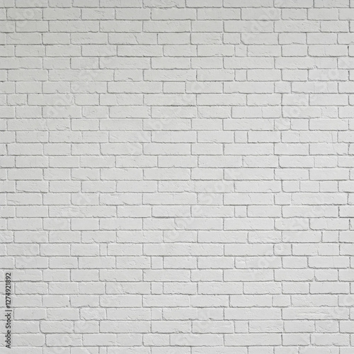 A clean white brick wall with a uniform pattern. The bricks have a slightly rough texture, with visible mortar lines. Soft lighting enhances the minimalistic, modern, and neutral aesthetic