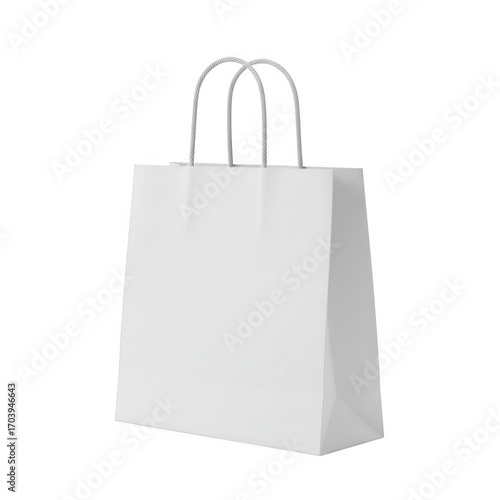 A clean white paper shopping bag with twisted handles isolated on transparent background