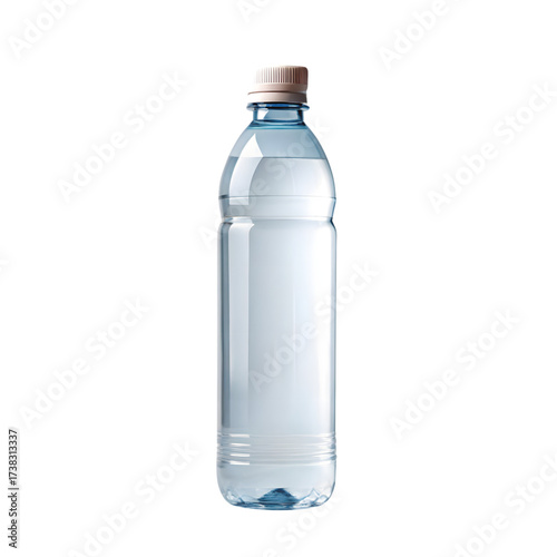 A clear plastic bottle filled with fresh, clean water, isolated on a transparent background