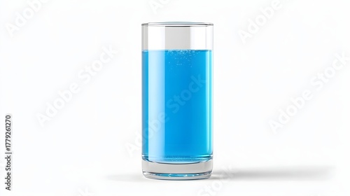 A clear tall glass showcases a vibrant blue liquid with effervescent bubbles isolated against a clean white studio backdrop perfect for refreshing beverage concepts