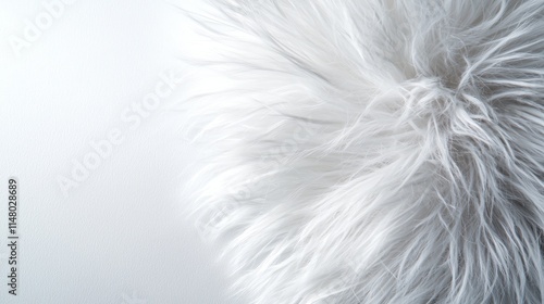 A close up of a fluffy white fur ball on a white background
