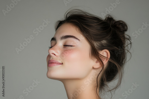 smile, woman, nose, health, cheek, hair, lip, shoulder, eyelash, ear, neck, flash, jaw, lipstick, make-up, gesture, happy, makeover, black, long, step, brown, art, layered, peach, portrait, fashion, fun, illustration, photo, beauty, face, model, skin, clean, make-up, eye, young, person, care, skincare, glamour, fresh, lip, natural, studio, closeup, spa, people