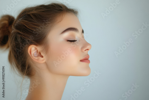 smile, woman, nose, health, cheek, hair, lip, shoulder, eyelash, ear, neck, flash, jaw, lipstick, make-up, gesture, happy, makeover, black, long, step, brown, art, layered, peach, portrait, fashion, fun, illustration, photo, beauty, face, model, skin, clean, make-up, eye, young, person, care, skincare, glamour, fresh, lip, natural, studio, closeup, spa, people