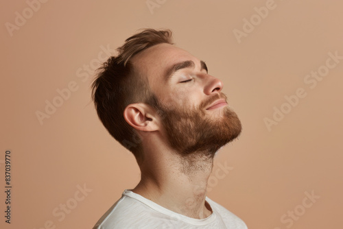 guy, man, nose, cheek, lip, smile, photogenic, shoulder, eyelash, ear, neck, flash, jaw, lipstick, gesture, happy, makeover, black, long, step, hair, art, layered, peach, portrait, fashion, fun, photo, beauty, face, model, skin, clean, make-up, eye, 1, person, care, skincare, glamour, fresh, lip, natural, studio, make-up, closeup, people, health