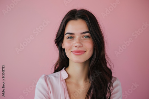 girl, woman, brunette, cheek, lip, smile, beautiful, shoulder, eyelash, ear, happiness, flash, jaw, lipstick, gesture, happy, makeover, black, long, step, hair, art, layered, peach, portrait, fashion, fun, photo, beauty, face, model, skin, clean, make-up, eye, 1, person, care, skincare, glamour, fresh, lip, natural, studio, make-up, closeup, people, health