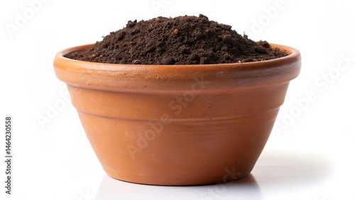 dirtied, dirt, compost, gardening, plant, planting, pot, terracotta, ceramic, agriculture, nature, growth, ground, earth, environment, isolated, white background, macro, closeup, texture, seed, flora, cultivate