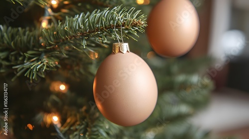 A Close-up of a Brown Egg-Shaped Christmas Ornament Hanging on a Christmas Tree