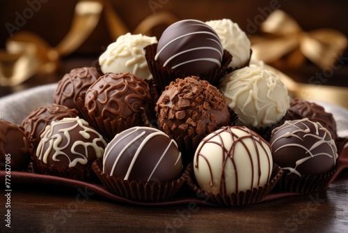 A close-up of a delectable chocolate truffle assortment in promoting artisanal chocolates or sweet indulgences,